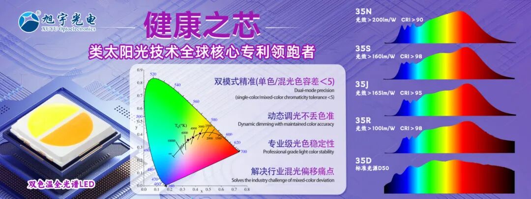 作为全球首个AI驱动的全光谱自适应照明系统,LumiSense 的核心底气,部分源于旭宇光电在全光谱领域的深耕与突破。系统依托生物传感器实时捕捉眼部特征与环境光状态,通过AI算法动态调节全光谱LED参数,实现个性化护眼照明,而这背后,是旭宇光电多款全光谱核心产品的技术支撑,更是我们从 “器件研发” 到 “场景解决方案” 的全链条能力体现。
