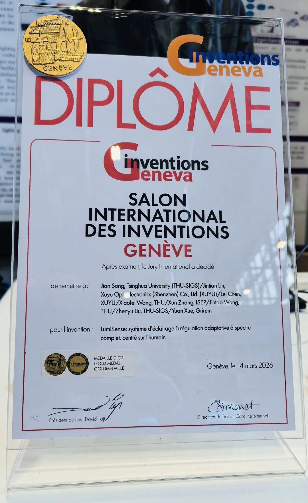 当地时间2026年3月14日,第51届日内瓦国际发明展的荣耀舞台上,中国科创力量闪耀全球!由旭宇光电联合清华大学宋健团队、法国ISEP张迅教授团队、有研稀土新材料共同研发的LumiSense:以人为本的自适应全光谱照明系统,凭借全球首创的技术突破与产业化价值,一举摘得本届发明展最高奖项 —— 金奖!这不仅是中国光载信息-光健康技术获得的国际权威最高认可,更是旭宇光电深耕全光谱领域十六载,以硬核产品与技术实力站上世界创新之巅的重磅见证!