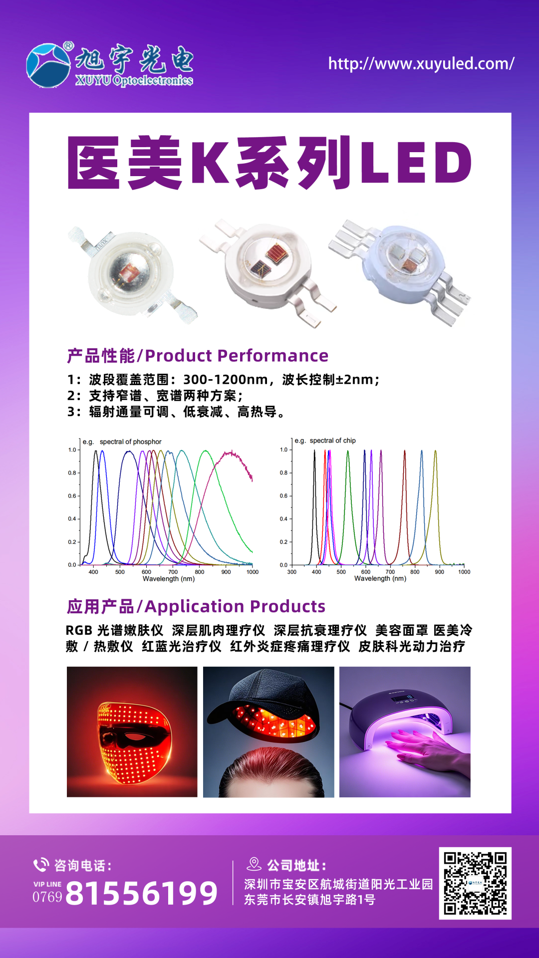 旭宇光电始终专注于半导体发光功能器件和集成电路的研发、生产与销售,业务贯穿器件封装、应用光谱设计、荧光粉材料配方以及应用产品研发等多个产业链环节。此次推出的医美LEDK系列产品,正是公司多年技术积累的集中体现: